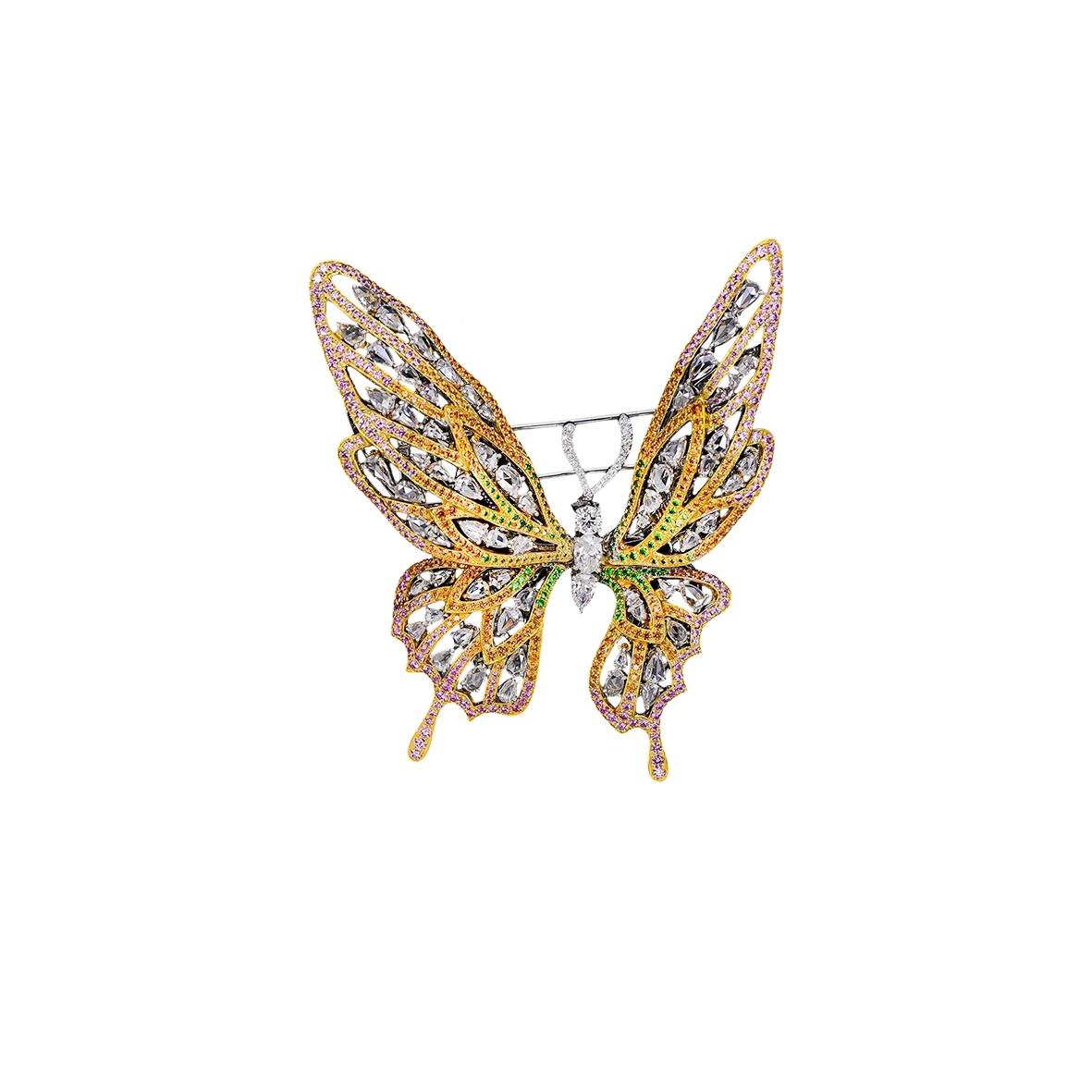Sapphire Tsavorite Diamond Butterfly Brooch