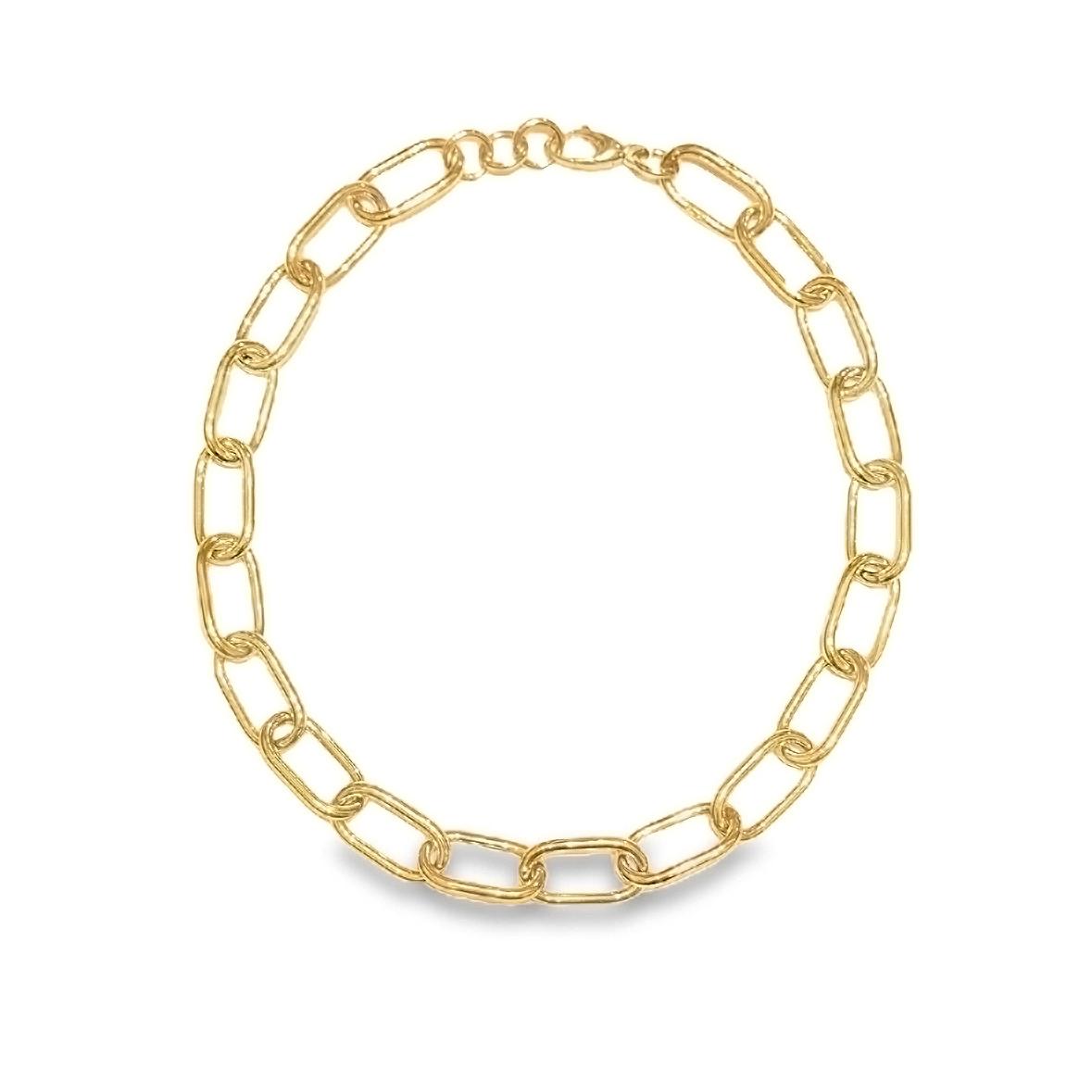 The chunky 18K Yellow Gold. Effortless glamour: Italian-style hollow chain technique, for ease of wear, creating a flattering line, accenting the collarbone.